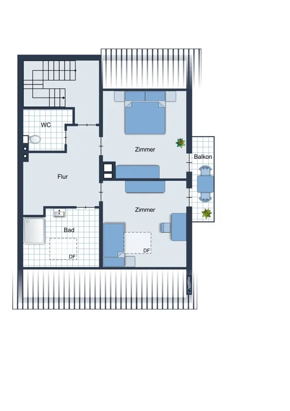 Die ca. 80qm große Wohnung im Erdgeschoss ist derzeit nicht bewohnt und kann flexibel nach den Vorstellungen des neuen Eigentümers renoviert oder neu vermietet werden. Die Einheit im Obergeschoss ist aktuell vermietet und bietet somit eine sofortige Einnahmequelle. Das Dachgeschoss steht ebenfalls leer und eröffnet weiteres Potenzial – sei es zur Eigennutzung, zur Vermietung oder für eine mögliche Zusammenlegung mit einer der anderen Wohnungen.
