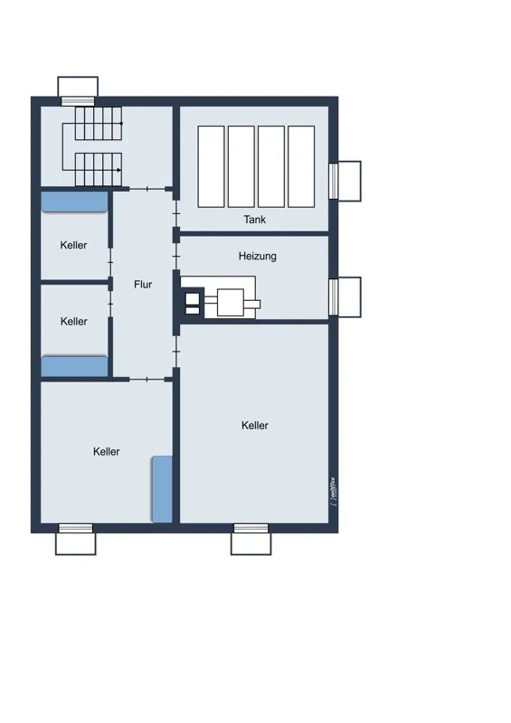 Jede der drei Wohneinheiten verfügt über ein eigenes Kellerabteil, das praktischen Stauraum bietet. Zwei Garagen ergänzen das Angebot und sorgen für komfortable Parkmöglichkeiten direkt am Haus.
