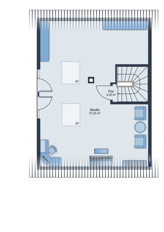 Das ausgebaute Dachgeschoss bietet zusätzlichen Raum für individuelle Wohnideen – ob als Atelier, Homeoffice oder gemütlicher Rückzugsort. Großzügige Fensterflächen und charmante Dachschrägen schaffen hier eine besonders behagliche Wohnatmosphäre.